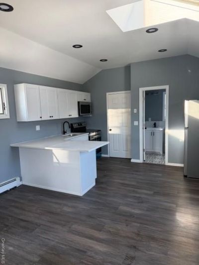 Newly renovated 1 bedroom house. Featuring new eat-in kitchen with stainless appliances, quartz countertops, new cabinets. New flooring throughout. Brand new bathroom. Washer/dryer in house. Private driveway. Use of half the garage. Large Patio in rear with 40 ft of bulkheading. Tenant pays all utilities.